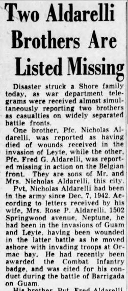 | Astorino, Sam | SSgt | 424 INF/G | Member 106th Baseball Team | Franklin Evening Star 08/11/1944 | |||||||||