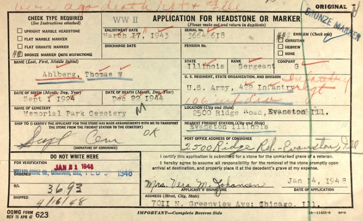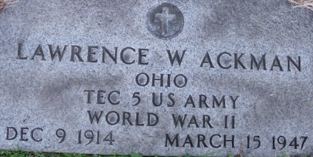 | Ackman, Lawrence W. | 35 331 834 | T/5 | 424 INF/HQ | CIB | Death 03/15/1947 (32) Glenview Cemetery East Palestine, Columbiana County, Ohio, USA | Ackman-LawrenceW.jpg | 27, FInd-A-Grave 43104661 | ||||||