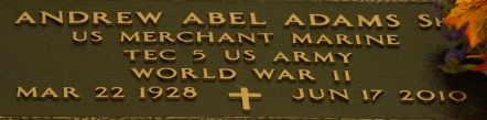 | Adams, Andrew Abel, Sr. | Death 06/17/2010 (81) Saint Joseph Cemetery Thibodaux, Lafourche Parish, Louisiana, USA | Adam-AndrewA.jpg | Adams-AndrewA.jpg | CUB 1946-09, FInd-A-Grave 54164508 | |||||||||