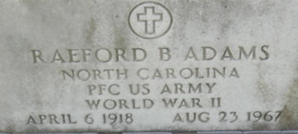 | Adams, Raeford B. | 34 466 642 | Pfc | 424 INF/CN | CIB | Death 08/23/1967 (49) Olive Branch Cemetery Portsmouth, Portsmouth City, Virginia, USA | Adams-RaefordB.jpg | 27, Find-A-Grave 26767839 | ||||||