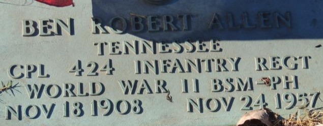 | Atwood, Roy Virgil | 36 023 980 | Pfc | 424 INF/1 BN | CIB | Death 02/21/1984 (66) Lake Creek Cemetery Spillertown, Williamson County, Illinois, USA | Atwood-RoyV.jpg | 27, Find-A-Grave 88534702 | ||||||