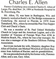 | Astin, Lawrence E., Jr. | 36 811 050 | 422 INF/CN | . | CIB, POW, GC, Am Theater, EAME/3 | captured 12/19/1944 9-B Bad Orb Hessen Nassau Prussia liberated 03/30/1945 | Birth 18 Feb 1924 Milton, Rock County, Wisconsin, USA Death 1 Feb 1966 (aged 41) Milton Junction, Rock County, Wisconsin, USA Burial Milton Lawns Memorial Park Janesville, Rock County, Wisconsin, USA | captured 12/19/1944 9-B Bad Orb Hessen Nassau Prussia liberated 03/30/1945 | Astin-LawrenceE-422CN-9B.jpg | Astin-LawrenceE.jpg | 59, Janesville Daily Gazette, Janesville Wisc 11/30/1945, FAG 90020291 | |||