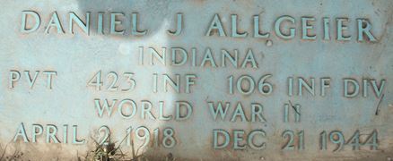 | Adams, Dolathe E. | 35 726 257 | Cpl | 424 INF/D | CIB | Death 05/23/1987 (69) Saint Johns Cemetery Loogootee, Martin County, Indiana, USA | 11, 22, Find-A-Grave 103857506 | |||||||