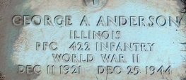 | Austin, Duane V. | 15 377 487 | Pvt | 422 INF/CN | CIB | Death 12/14/2012 (87) Marlboro Cemetery Marlboro, Stark County, Ohio, USA | From the Alliance Review 17 Dec 2012 Duane graduated in 1946 from Alliance High School after serving three years in the European Theater during World War II in the United States Army. Three bronze stars were earned experiencing the D-Day Invasion and the Battle of the Bulge. He was a lifetime member of the American Legion. | 27, Find-A-Grave 59812886 | ||||||
