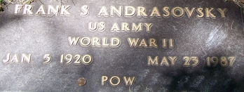 | Austin, Frank Dewitt, Jr. | O-1 297 476 | 1LT | 422 INF | CIB, POW, EAME/3 | Oflag 13-B | Birth 21 Dec 1914 Granite, Greer County, Oklahoma, USA Death 17 Mar 2001 (aged 86) Escondido, San Diego County, California, USA | Oflag 13-B | 1, 59, FAG 191939162 | |||||