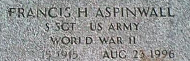 | Aspinwall, Francis H. | 32 947 912 | SSgt | HQ Fire Direction. | 589 FABN/HQ Batt | Belgian Fourregerre CUB Vol 8, No 2, 11/1951 | Death 08/23/1996 or 1997 (81) Oak Hill Cemetery Otisfield, Oxford County, Maine, USA | Aspinwall-FrancisH.jpg | Aspinwall-FrancisH.jpg | CUB 1946-08, CUB 1948-04, CUB 1949-12-1950-1, CUB 1981-4/5/6, CUB 1985-12-1986-1/2, 8, Find-A-Grave 100355337, John Kline Death List 12/15/2007 | ||||