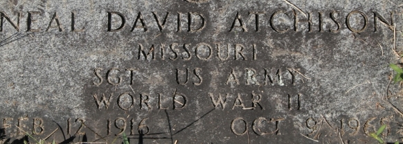 | Atchison, Neal David | 37 049 979 | 422 INF | CIB, POW, EAME/3 | 9-A | Death 10/09/1968 (52) Oak Forest Cemetery Douglas County, Missouri, USA | 9-A | Atchison-NealD.jpg | 59, Find-A-Grave 78038944 | |||||