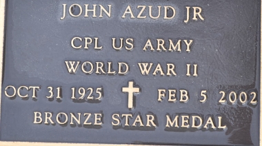 | Azud, John, Jr. | Cpl | 106th then Airborne Troop Carrier for home | EAME/3, BS | Death 02/05/2002 (76) Delaware Veterans Memorial Cemetery Millsboro, Sussex County, Delaware, USA | newspaper article home on 45 day furlough | Azud-John.jpg | Courier-News, Bridgewater NJ 11/23/1945, Find-A-Grave 70757765 | ||||||