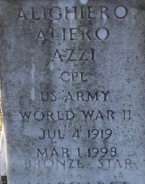| Azzi, Alighiero A. | 33 545 504 | Cpl | 423 INF/1 BN/A | CIB, POW, EAME/4, BS | 9-B Bad Orb Hessen-Nassau, Prussia | Death 03/1998 (78) Mount Calvary Cemetery Richmond, Richmond City, Virginia, USA | Combat Infantryman Badge 12/16/1944 GO 1945-051 | Azzi-Alighiero.jpg | CUB 1989-4/5/6, 27, 62, GO 1945-051, Find-A-Grave 158889217 |