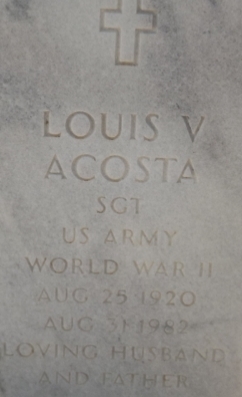 | Acosta, Louis V. | Sgt | Death 08/31/1982 (62) Fort Bliss National Cemetery El Paso, El Paso County, Texas, USA | Acosta-LouisV.jpg | CUB 1946-09, FInd-A-Grave 255008 | |||||||||
