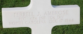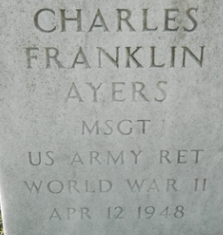 | Ayers, Cecil Leroy | O- | 1LT | 424 INF/D | Death 06/22/1960 (49) Florence National Cemetery Florence, Florence County, South Carolina, USA | Headstone says US Army but description says USAAF | 11, 22, Find-A-Grave 70246938 | |||||||