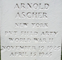 | Asher, Albert L. | 38 468 025 | Pfc | 423 INF/3 BN/K | WIA | CIB, PH, PH/OLC, EAME/4 | 4-B Muhlberg Sachsen POW # 313 488 | Death 02/24/2013 | Combat Infantryman Badge 12/16/1944 GO 1945-051 Rank upgraded because of POW status. MIA over Germany since 12/21/1944 | Asher-AlbertL-1.jpg | CUB 1991-10/11/12, 27, 62, GO 1945-051, CUB 04/2016, Facebook grandson, | |||