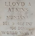 | Atkins, Lloyd A. | 39 931 626 | Pfc | 422 INF/L | CIB | Birth 25 Mar 1920 Death 14 Dec 1946 (aged 26) Burial Mountain View Cemetery Butte, Silver Bow County, Montana, USA | Atkins-LloydA.jpg | 27, FAG 144400308 | ||||||