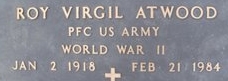 | Atwood, Roy Virgil | 36 023 980 | Pfc | 424 INF/1 BN | CIB | Death 02/21/1984 (66) Lake Creek Cemetery Spillertown, Williamson County, Illinois, USA | Atwood-RoyV.jpg | 27, Find-A-Grave 88534702 | ||||||