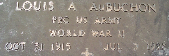 | Aubuchon, Louis A. | 37 182 092 | Pfc | MP | 424 INF/B | CIB | Death 07/03/1997 (81) Sacred Heart Cemetery Butler County, Missouri, USA | Aubuchon-LouisA.jpg | Aubuchon-LouisA.jpg | 27, Find-A-Grave 112973749 | ||||