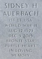 | Auerbach, Sidney H. | O-511 541 | 1LT | Led MG platoon of Co H. | 424 INF/H | WIA | CIB, BS, PH | Death 12/05/2015 (92) Sarasota National Cemetery Sarasota, Sarasota County, Florida, USA | Auerbach-SidneyH.jpg | CUB 1946-10, CUB 1946-12, CUB 1949-10/11, CUB 1994-10/11/12, 27, CUB 03/2016, Find-A-Grave 156236487 | ||||