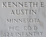 | Austin, Kenneth E. | 37 583 510 | Pvt | 424 INF/D | CIB | Birth 30 Apr 1919 Death 2 May 1971 (aged 52) Burial Fort Snelling National Cemetery Minneapolis, Hennepin County, Minnesota, USA | Austin-KennethE.jpg | 27, 54, FAG 305090 | ||||||