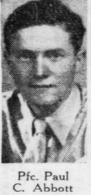 | Abbott, Paul C. | 42 080 800 | Pfc | 424 INF/C | CIB | Death 04/23/1949 (41) Walnut Ridge Cemetery Jeffersonville, Clark County, Indiana, USA | newspaper article Returns to US with Trench Foot from Battle of the Bulge | Abbott-Paul.jpg | CUB 1946-09, CUB 1948-10/11 11, 27, News Journal, Wilmington DE, Find-A-Grave 127413289 | |||||
